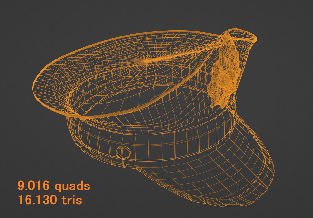 -9016 faces. 16.310 tris. and 3 material slots, clean topology. UV mapped so you can combine the materials and textures for optimization purposes.